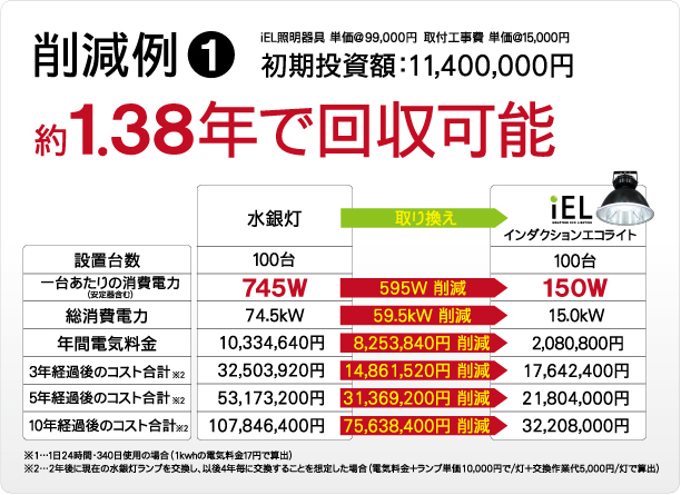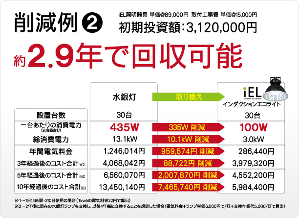 大手電機メーカー(水戸) 従来…水銀灯700W