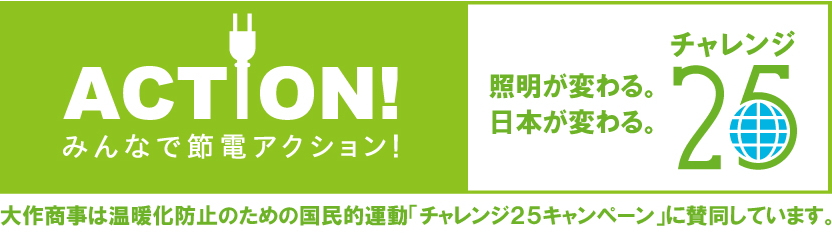 大作商事株式会社はこの「チャレンジ25キャンペーン」に賛同し、社員一同がより高い省エネ意識を持つとともに、エコ製品ビジネスを軸として社会貢献をして参ります。