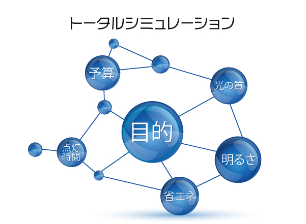 工場・倉庫・施設・オフィス照明のプロとして、光の質・照度・配光・予算などを総合的に考慮し、照度シミュレーション、投資回収シミュレーションを徹底的にかつスピーディに行っております。