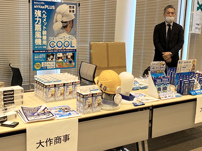 清水建設本社シミズホールにて開催「備蓄防災フェア」(主催:ミルックス)でマジクール等熱中対策品を展示2024年3月11日、「防災備蓄フェア」(主催:ミルックス)が清水建設本社シミズホールで開催され、防災関連のメーカーとして出展しました。30秒振れば20分点灯する電池不要の懐中電灯「ナイトスターJP」や、災害時の熱中症対策品として、水を含ませるだけで冷感が長時間持続するネッククーラー「マジクール」等を展示し、大きな反響を頂きました。
