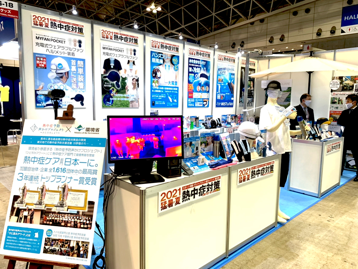 緑十字展2021 in 東京2021年 10月27日(水)〜29日(金) 緑十字展2021 in 東京に出展し労務安全、現場作業での熱中症予防品を展示し、多くの方々に製品をご覧いただきました。ブースに足をお運びいただきました皆様に厚く御礼を申し上げます。