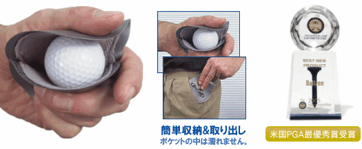 ゴルフは紳士のスポーツ。ゴルフボールの「拭き方」でも魅せたいものです。汚いボールを汚い雑巾などで拭いていませんか?BALLZEEはポケットに収納できるコンパクトでスタイリッシュな携帯用ゴルフボールクリーナー。繰り返し使えるので実に経済的。ゴルフボールをスマートに拭いて、爽快なプレーをしましょう。BALLZEEは2005年アメリカPGAショーで優秀賞受賞に輝き、今シーズンからはプロゴルファーもトーナメントで使い始めた、トレンドアイテムです。