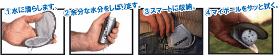 プロも愛用する携帯用ゴルフボールクリーナー。セルフプレーに。