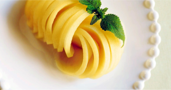| 一流パティシエの味を再現 りんごのコンポート エネルギー:69kcl、塩分:0g 通常の調理だと調理にも後片付けにも時間がかかってしまうコンポートも、真空にした袋の中で調理するので大幅に時間を短縮できます。 |