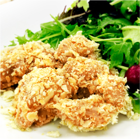 | 低カロリー 揚げない唐揚げ エネルギー:165kcl、塩分:0.4g |