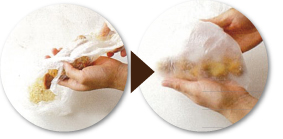 - 真空にした袋を沸騰したお湯の中に入れ10分間加熱。