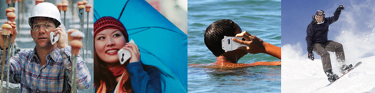 プールやビーチ、キッチンやお風呂、アウトドア、冬はウィンタースポーツなど、濡れた手で操作することができます。完全に水に入っても大丈夫。大事なデータを水から守るとともに、いつでもメールや電話をすることができます。