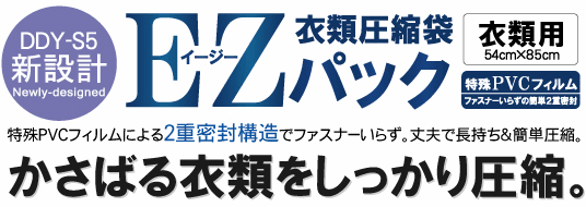 衣類圧縮袋「EZパック」丈夫で長持ち、ファスナーいらずの特殊設計。