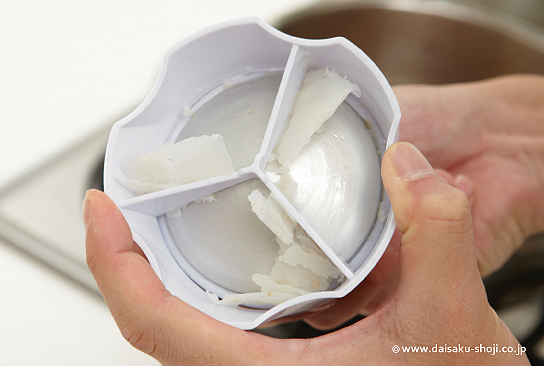 | お手入れ方法: | ファットフリーザーを常温にし(急ぎの場合はお湯などで解凍)、食器洗浄器に入れるか、スポンジや柔らかい布を使用し、ぬるま湯で洗ってください。(※食器洗い機可…食器洗い機内の最高温度が110℃以上になる場合は使用しないでください。 |