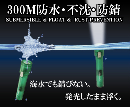 ナイトスターUは水深300M防水。洪水、豪雨時などでパニックになり誤って水中に落としても発光面を上にしたまま浮かびます(スイッチを入れていた場合は発光したまま)。防災用途だけでなく、船上や釣り等でも大変便利。雨の日の夜間作業からダイビングまで幅広いシーンで活躍します。海水に浸したままでも錆びません。
