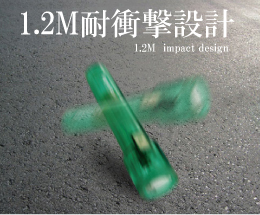 ナイトスターUは高さ1.2m落下試験(コンクリート)に合格しています。外装はポリカーボネイトによる密閉構造(分解不可能)。地震などのトラブル時による落下の衝撃に対しても、非常に壊れにくい設計となっております。