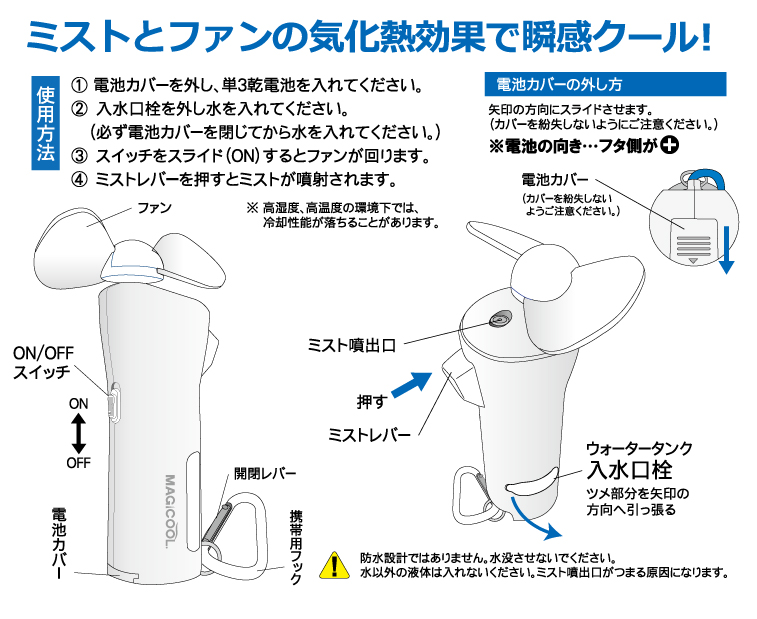 冷感の秘密はファンとミストの気化熱作用!