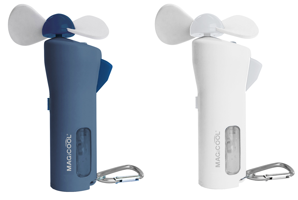 ファンの送風とミストで急速冷感。コンパクトなミスト付小型携帯扇風機。
