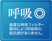 ● 超低呼吸抵抗デザイン特殊ポリマー性フィルター採用(14.5mmH2O)
