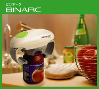 ビンアークは、ワンタッチでビンのフタを開けてくれるワンタッチビンオープナーです。本体をビンの上に乗せてスタートボタンを押すだけ。